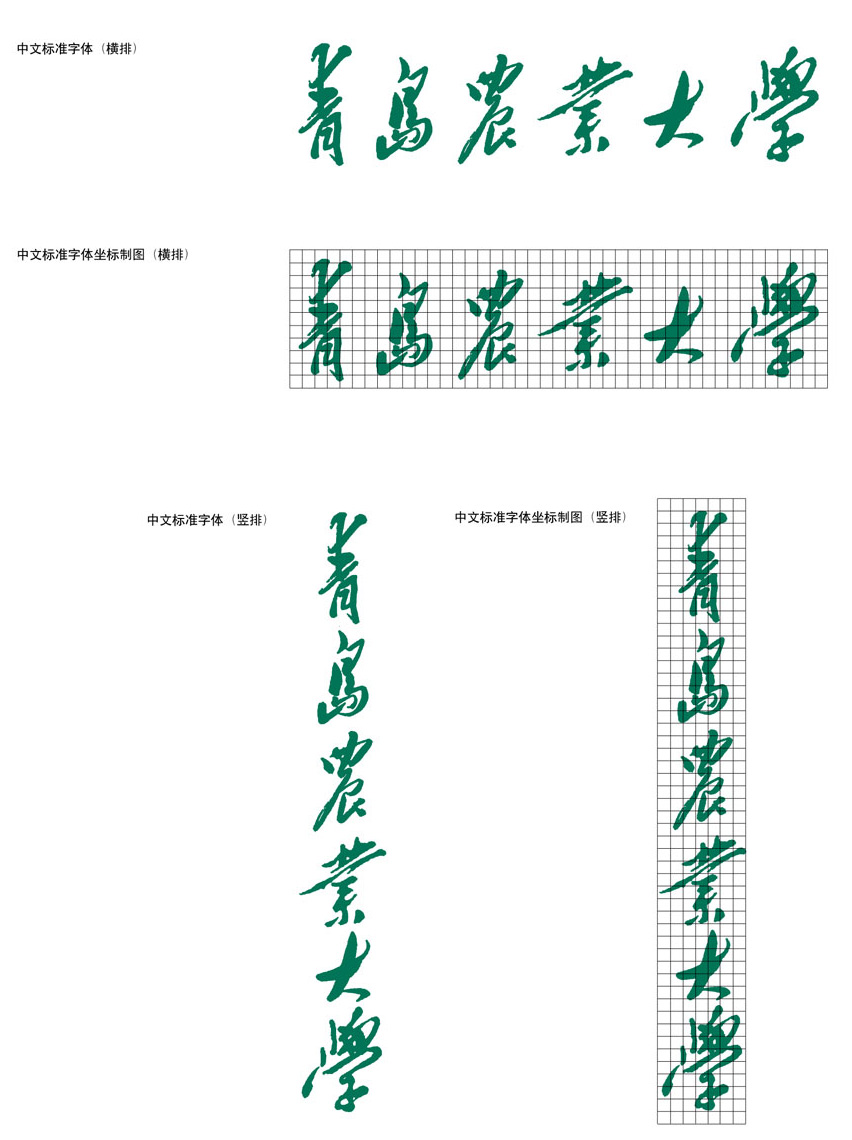 (摘自《关于公布使用学校校名字体及校标的通知》[青农大校办字〔2007〕11号])