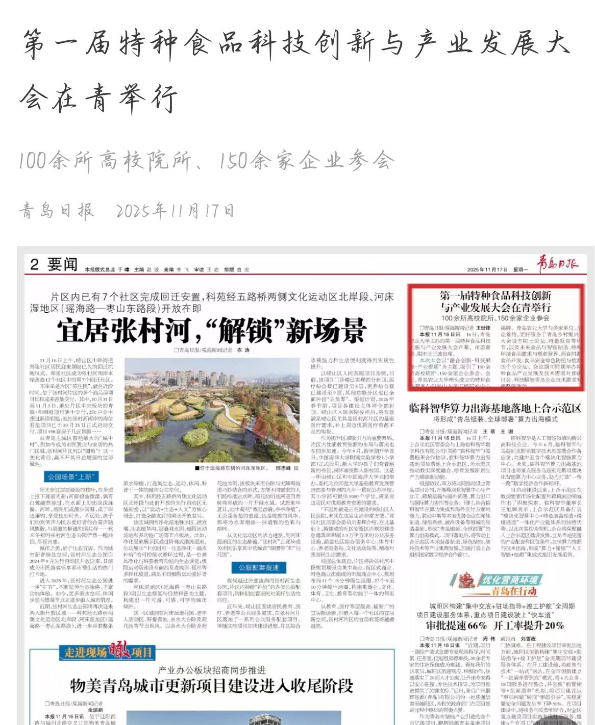 齐鲁晚报《第一届特种食品科技创新与产业发展大会在青岛开幕》