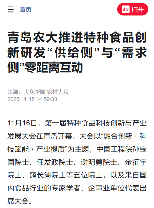 大众·半岛新闻:院士领衔、产学研联动赋能产业发展!第一届特种食品科技创新大会在青开幕