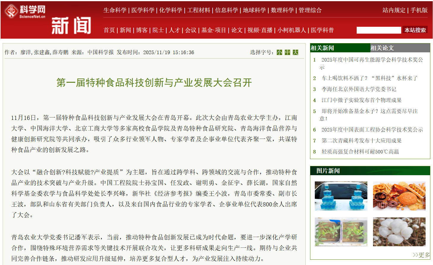 科学网:第一届特种食品科技创新与产业发展大会召开