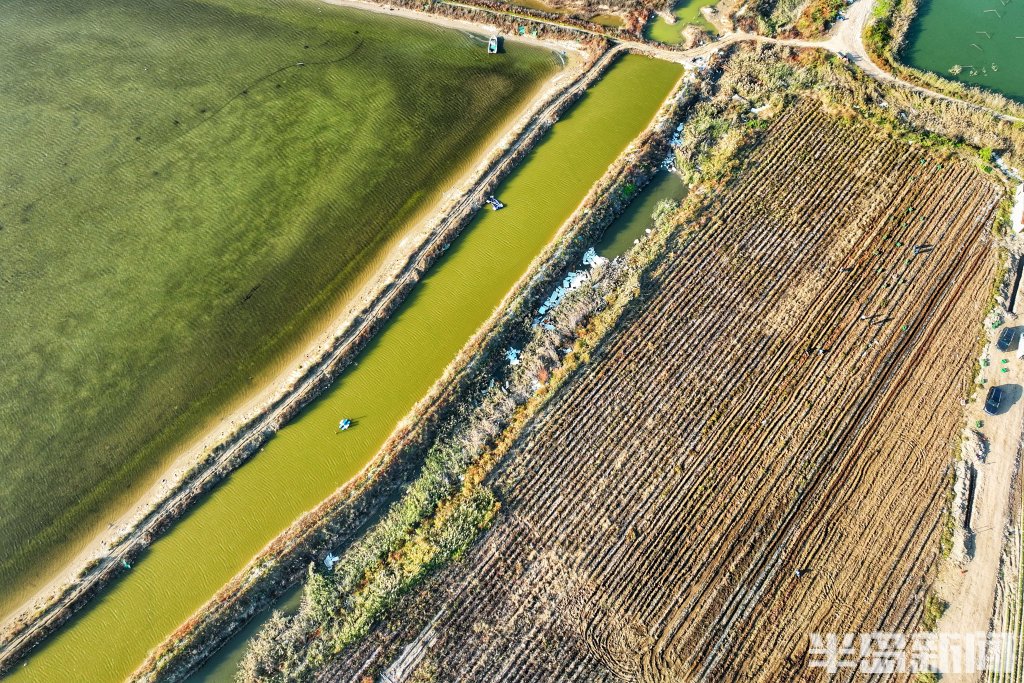就在一年前,这里还是另一番景象。废弃的海虾池无人问津,干裂的土地泛着碱白,成片的芦苇和碱蓬水土交界处随风摇曳,在这附近春天撒下的种子往往难逃盐碱的“围剿”。30亩甘薯在这片“农业禁区”里茁壮成长,今年亩产达到6000斤左右。