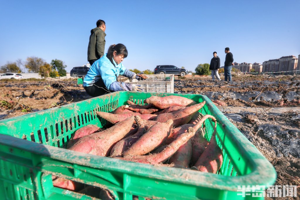 盐碱地里收获着一筐筐甜蜜甘薯。